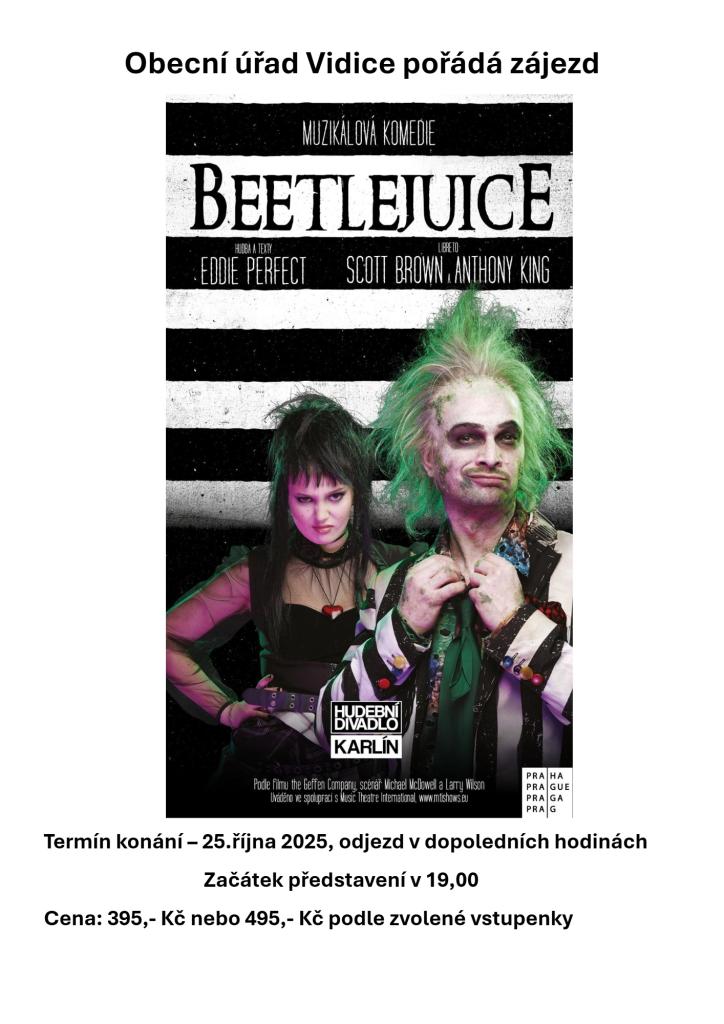 Obecní úřad Vidice pořádá dne 25. října 2025 zájezd do hudebního divadla Karlín na muzikálovou komedii BEETLEJUICE.