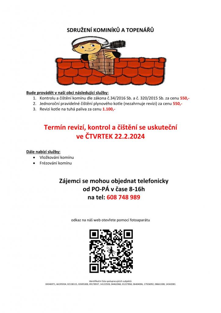 Revize, kontroly a čištění komínů.